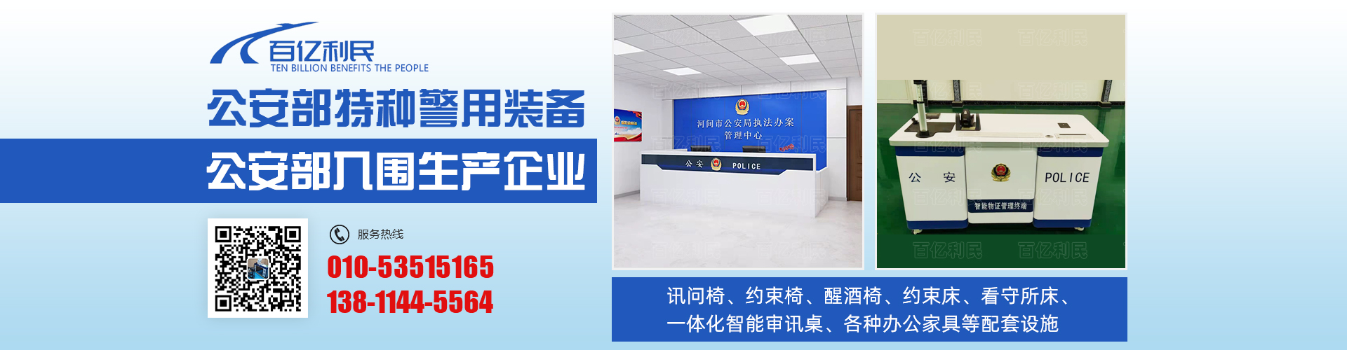 本公司成立于2008年,前身為北京百利億民科技有限公司,總部位于國(guó)家政治文化中心首都北京,是一家集研發(fā)、設(shè)計(jì)、生產(chǎn)、銷(xiāo)售于一體,專(zhuān)業(yè)致力于研發(fā)、銷(xiāo)售安全防范器械的實(shí)體企業(yè),2017年公安部入圍生產(chǎn)訊問(wèn)椅企業(yè)。公、檢、法監(jiān)察委、紀(jì)委等配套產(chǎn)品指定生產(chǎn)商。10余年來(lái)服務(wù)于全國(guó)辦案單位1萬(wàn)多家案例。